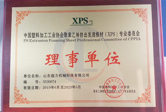 山東超力機械有限公司,憑借過硬的二氧化碳擠塑板(CO2-XPS)研發(fā)、生產技術與優(yōu)異的擠塑板設備質量,被中國塑料加工工業(yè)協(xié)會聚苯乙烯擠出發(fā)泡板材(XPS)專業(yè)委員會授予協(xié)會理事單位。...
